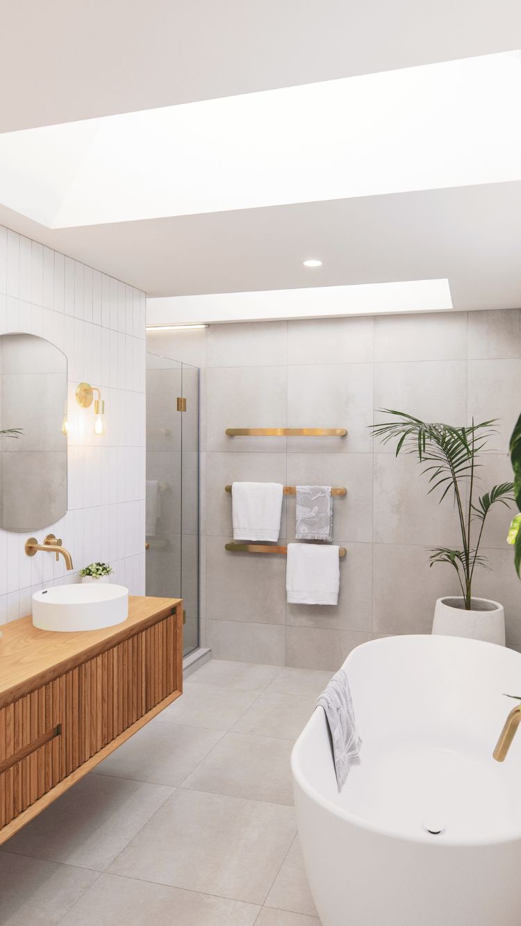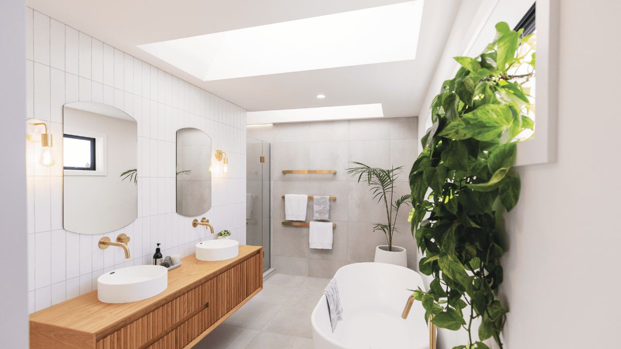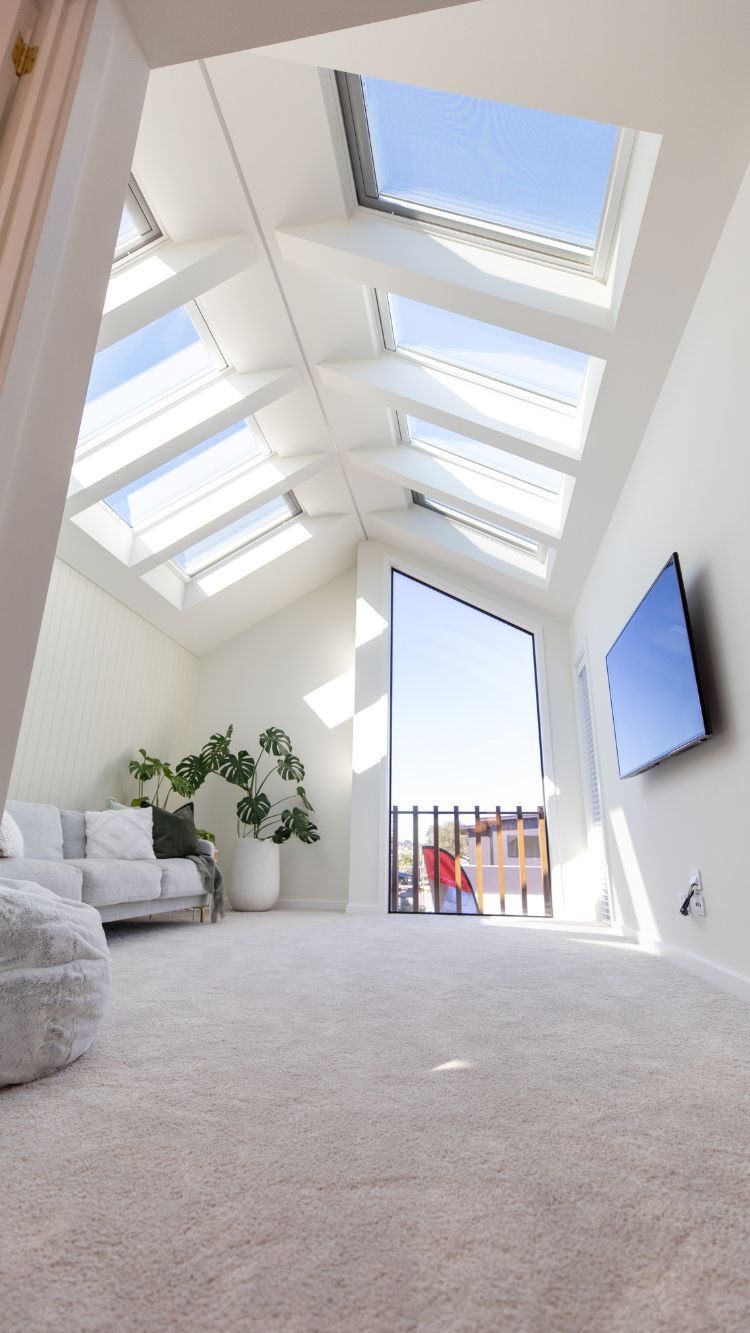 Having a showhome to demonstrate his team’s ability is part of Andre’s recipe for success. It means prospective clients interested in real estate can tour a house that displays their commitment to quality, innovation and attention to detail. It’s a two-storey display home that makes a real statement from the street. However the real magic happens on the inside. Even the main access way that connects downstairs and upstairs spaces also enjoys natural light from the skylight above.