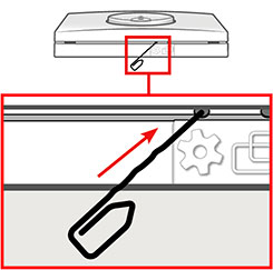 Make a long press (approx. 10 seconds) on the gateway central button marked with a “Settings” icon until the corresponding LED starts blink in blue.