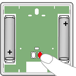 4. Insert the batteries in all sensors and switches at the same time. The LED on each product should blink green until the pairing has ended.